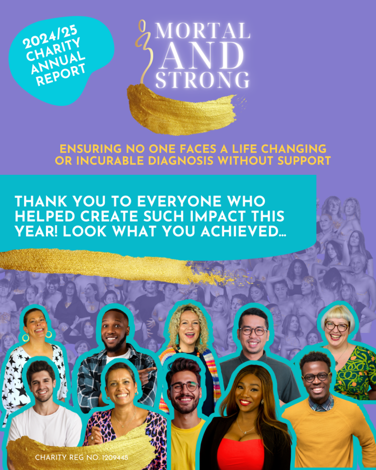 "Mortal and Strong has changed my life, and no, I’m not exaggerating. I found the charity at a time when I felt very low and was unsure of what my life would look like with a long term health condition. Liz and Sammy welcomed me like a hug and showed me how important it was to share my experiences. This charity has integrity, knowledge and most importantly a huge heart. Being a volunteer for the Scars of Gold Campaign as well as a 'Voice' gave me a purpose when I felt invisible and I am honoured to say I am now a charity ambassador for them … so yes Mortal and Strong changed my life and continues to do so."
